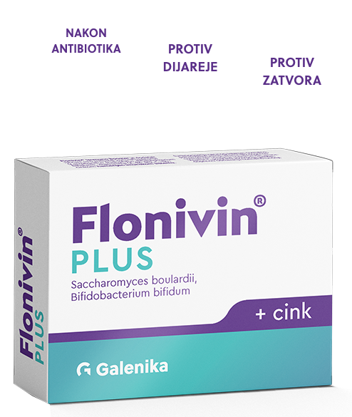 Flonivin® Plus kapsula sadrži najmanje 5 milijardi korisnih probiotičkih ćelija Saccharomyces boulardii, Bifidobacterium bifidum i 5 mg cinka.